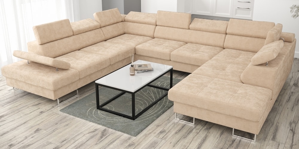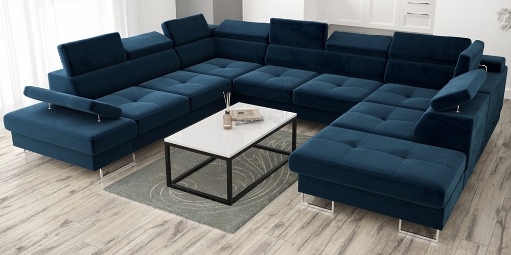 Galaxy Max I. U alakú ülőgarnitúra, sarokkanapék, stílusos, kényelmes és funkcionális kanapé. Galaxy sarokkanapé alvó funkcióval, a legjobb minőségű alkatrészekből készült, modern dizájn, magas króm lábakkal, állítható fejtámlákkal és kartámaszokkal, választható szövettel vagy natúr bőrrel több féle színben. Egyszerű és kényelmes alvó mechanizmussal, amely lehetővé teszi a kanapé átalakítását, remek alvóhellyé. Méretek: U alakban=350x225x276 cm, mélység=97 cm, magasság=74/95 cm, fekvőfelület=118x267 cm