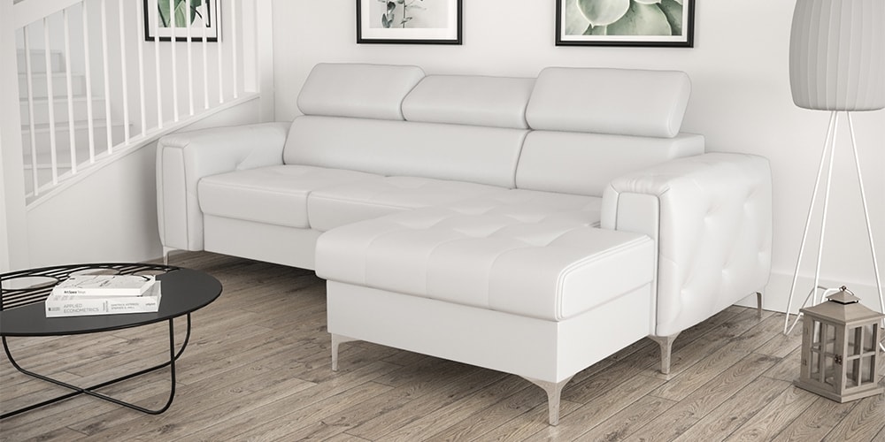 Orion mini ágyazható L alakú sarokkanapék fehér bőr