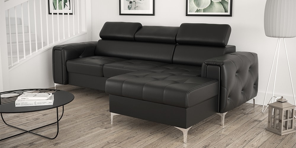 Orion mini ágyazható L alakú sarokkanapék fekete bőr