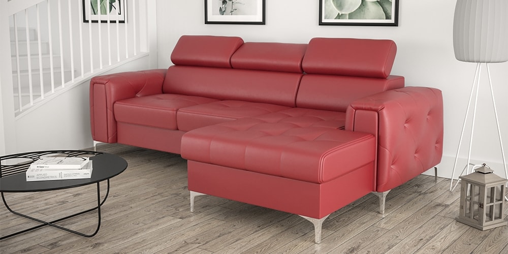 Orion mini ágyazható L alakú sarokkanapék piros bőr