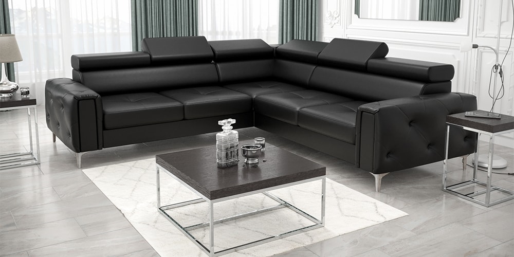 Orion L-alakú ágyazható sarokkanapé fekete bőr