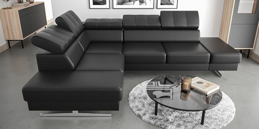 Emporio olasz sarok ülőgarnitúra fekete bőr