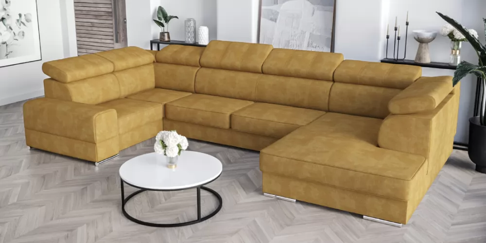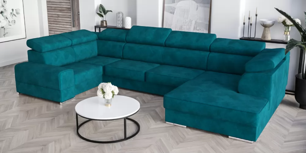 Royal Max I. U alakú nagy sarokkanapék, ágyazható sarokgarnitúra, klasszikus stílusú kárpitozott kényelmes kanapé alvó funkcióval és ágyneműtartóval, választható szövettel vagy bőrrel több féle színben. Több fokozatban állítható fejtámlákkal, széles, masszív oldalakkal, hullámrugóra és rendkívül rugalmas habszivacsra rendelkezik. A fejtámlák külön figyelmet keltenek, mivel kiegészítő dekorációként varrva vannak. A bőrbútor rendkívül elegáns és exkluzív termék. Egyedülálló kialakításuk és precíz kidolgozásuk egy kis luxust, hihetetlen kényelmet és elegáns megjelenést kölcsönöz a helyiségekbe. Tökéletesek választás nappaliba, hálószobába, irodába, dolgozószobába és egyéb helyiségekbe is. A kanapé választható jobbos vagy balos kivitelben is. L=375x210/185 cm, mélység=97 cm, magasság=78/95 cm, fekvőfelület=305x130 cm