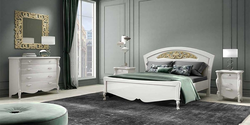 Smeraldo egyedi világos hálószoba garnitúra arany díszítéssel