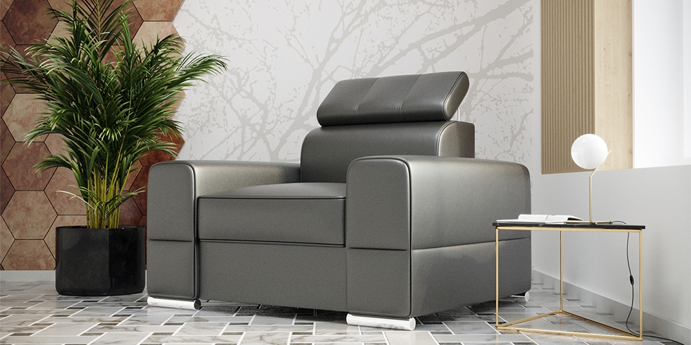 Royal elegáns masszív fotel, stílusos, kényelmes és funkcionális- A legjobb minőségű alkatrészekből készült, modern króm lábakkal, állítható fejtámlákkal. Választható szövettel vagy natúr bőrrel több féle színben. Egyszerű és kényelmes. Méretek: L=114 cm, mélység=97 cm, magasság=78/95 cm