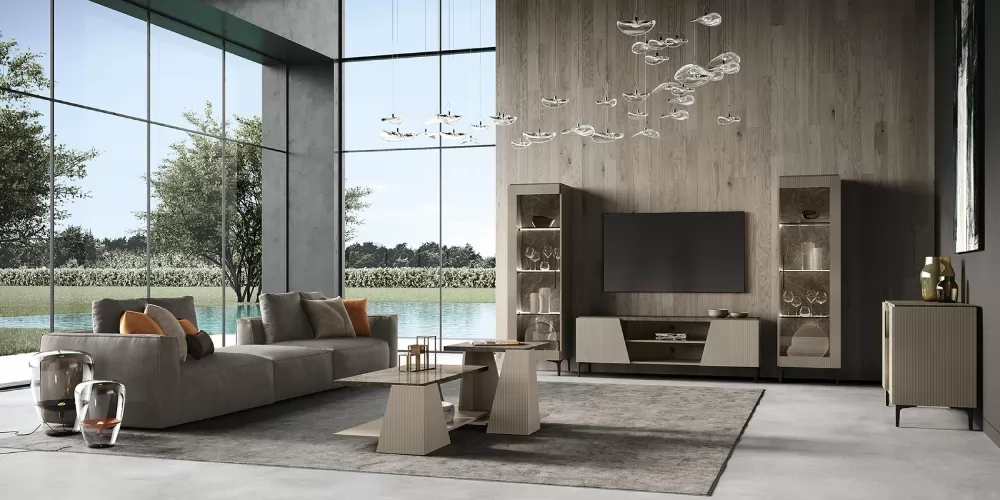 Lusso elegáns olasz nappali garnitúra, geometrikus és modern vonalak jellemzik, amely az elegancia és az innováció tökéletes egyensúlyát testesíti meg. A kontrasztos anyagok fúziója a részletekre való aprólékos odafigyeléssel párosulva egyedi élményt teremt, amely bármilyen teret kifinomult szépségűvé és páratlan stílusúvá varázsol.